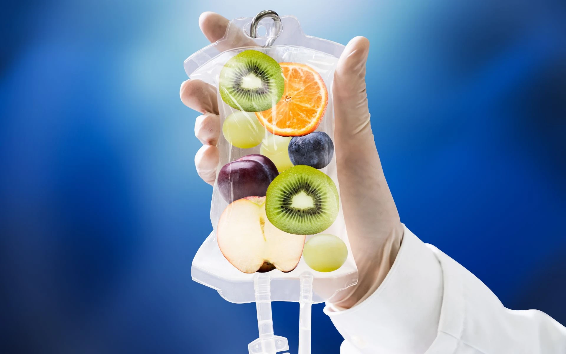 IV Therapy Coquitlam offers a refreshing twist with an IV bag filled with lime and lemon slices.